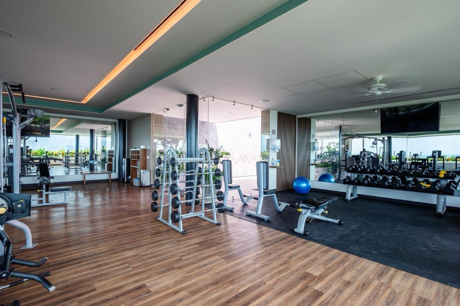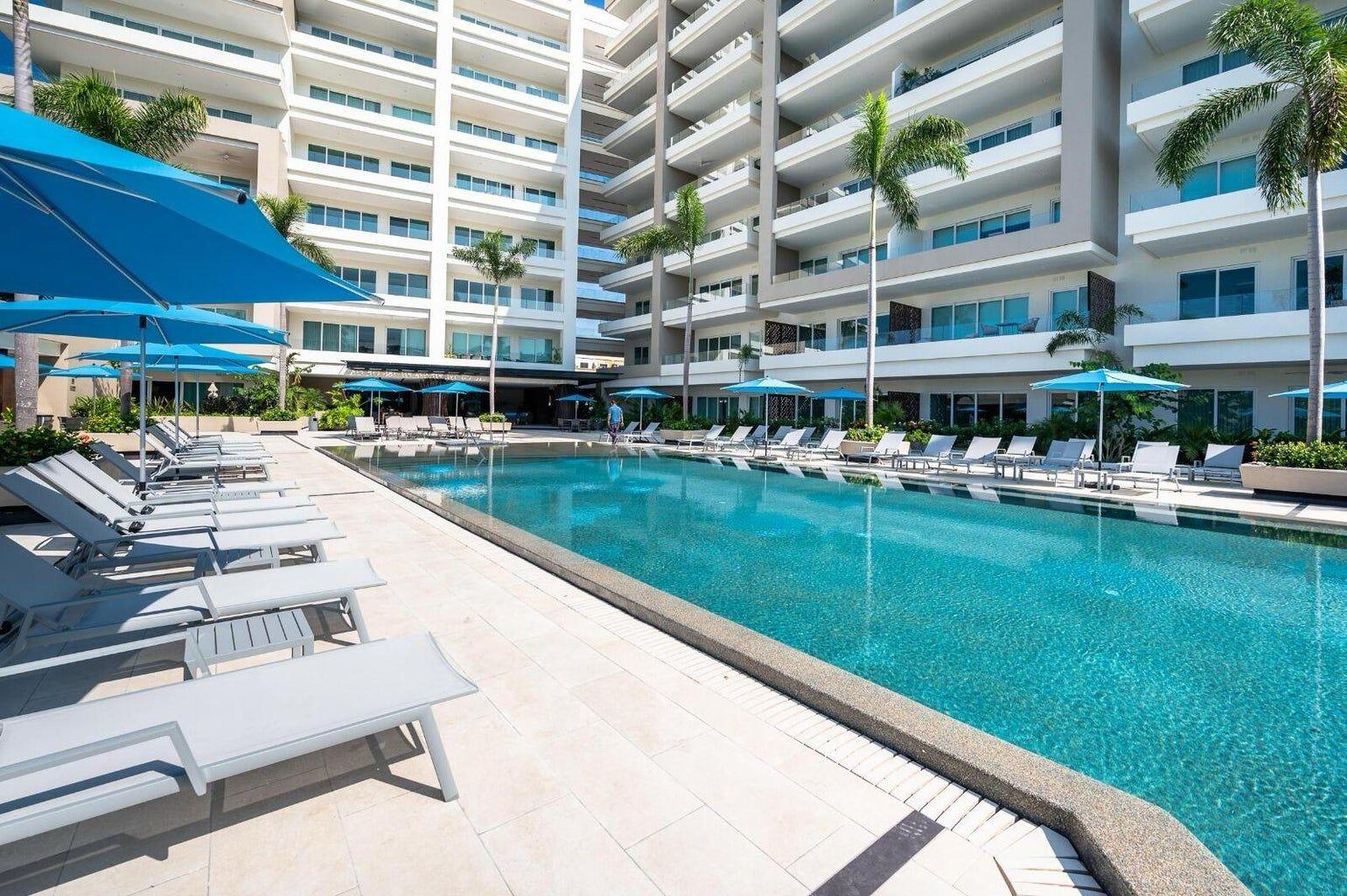 Ground-floor pool, restaurant, gym, coworking area, elevator, rooftop Jacuzzi with incredible views of the entire marina, and a spa.
